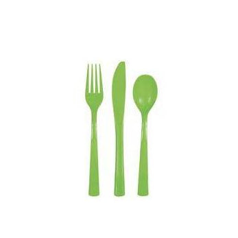 Set de 18 cubiertos desechables en color verde lima, perfectos para decoraciones alegres y modernas.