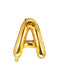 Globo metalizado en forma de letra A color oro, ideal para crear nombres, iniciales y mensajes.