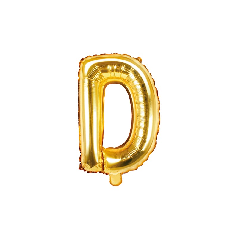 Globo metalizado en forma de letra D color oro, perfecto para iniciales y nombres en decoraciones.