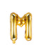 Globo metalizado en forma de letra M color oro, perfecto para iniciales, nombres y mensajes.