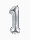 Globo metalizado en color plateado con número 1, ideal para primeros cumpleaños.