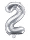 Globo metalizado en color plateado con número 2, perfecto para celebraciones.