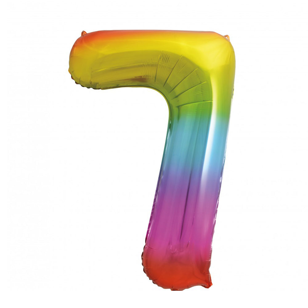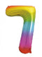 Globo metalizado multicolor con número 7, ideal para celebraciones.