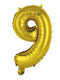 Globo metalizado en color dorado con número 9, ideal para decoraciones elegantes.