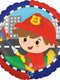 Globo metalizado con diseño de bombero, ideal para fiestas infantiles.