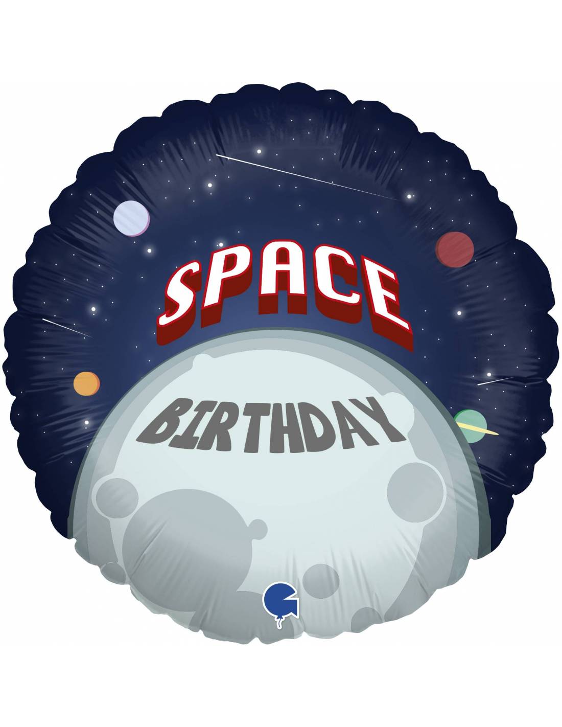 Globo metalizado con temática del espacio, ideal para fiestas infantiles temáticas.