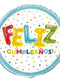 Globo metalizado redondo con mensaje Feliz Cumpleaños, ideal para todo tipo de celebraciones.