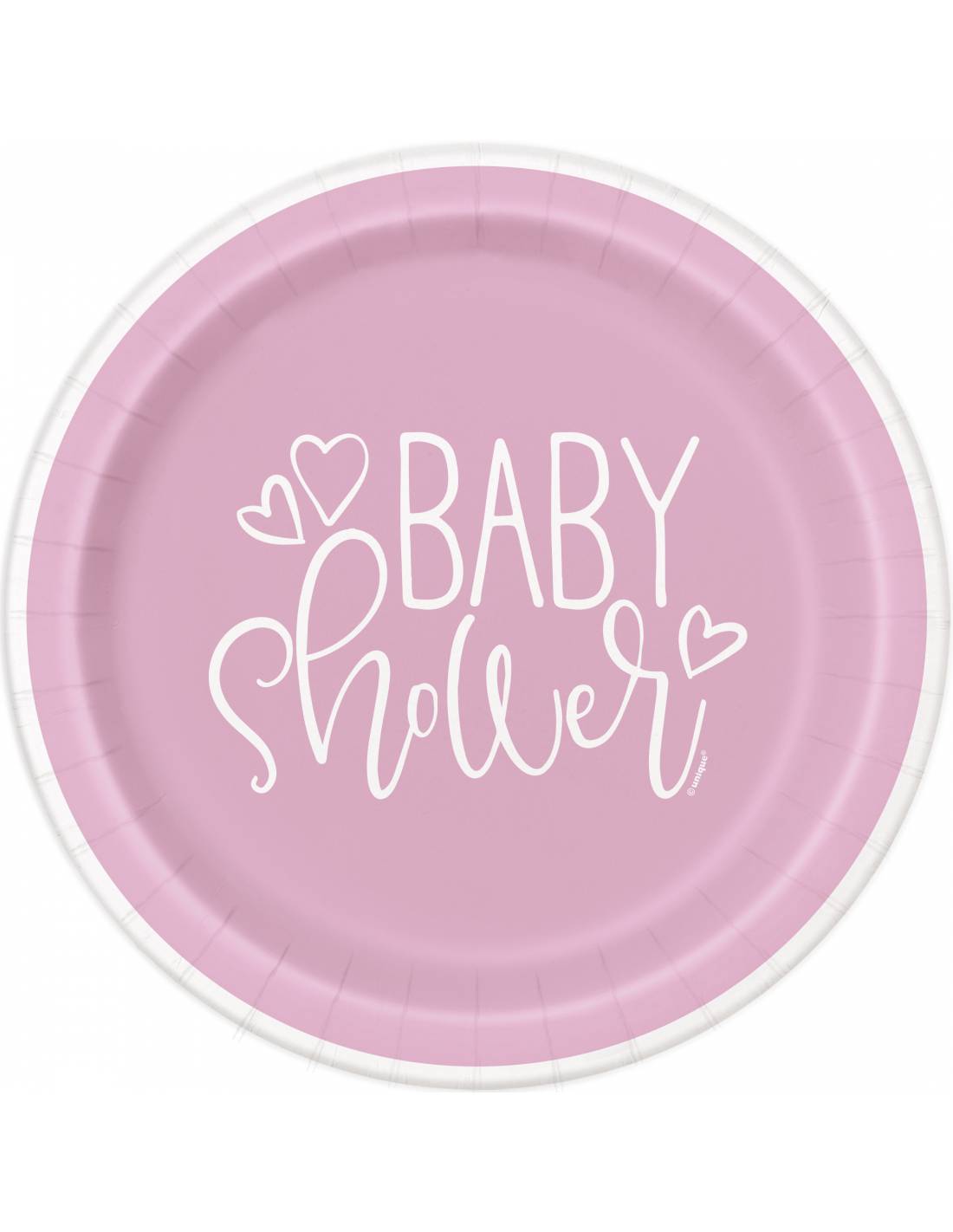 Pack de 8 platos de cartón baby shower girl 23 cm