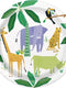 Pack de 8 platos de cartón con temática de la selva, perfectos para fiestas infantiles y celebraciones temáticas.