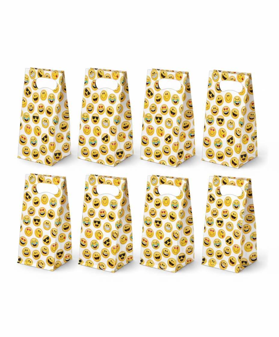 Pack de 8 bolsas para caramelos o juguetes temática emoji.