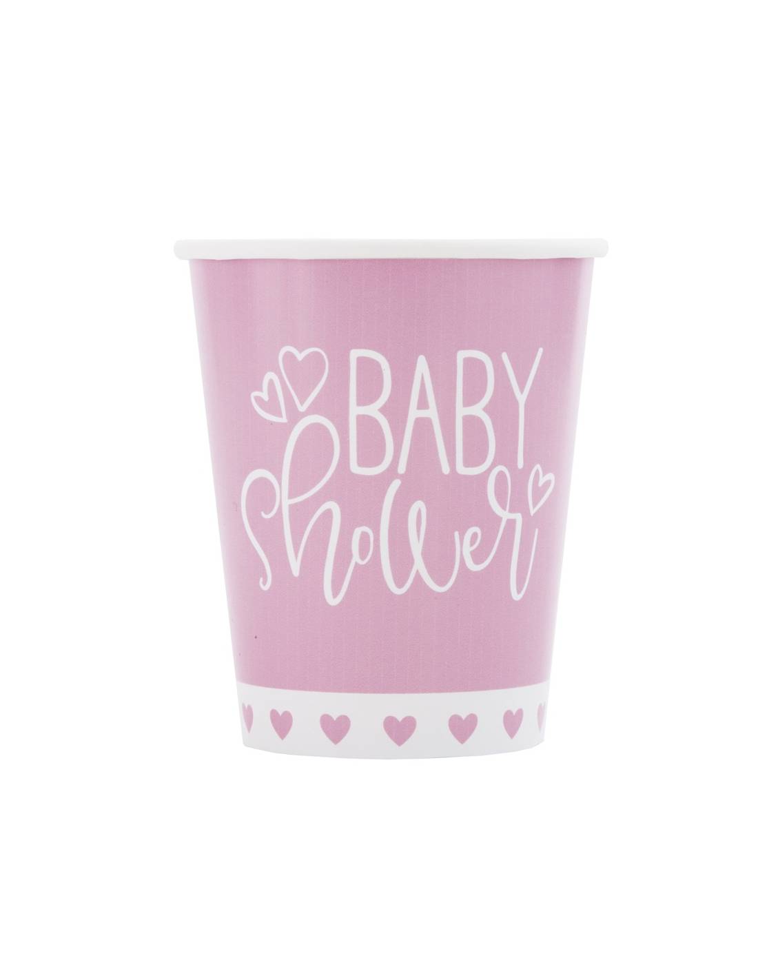 Pack de 8 vasos de cartón con diseño Baby Shower Girl, ideales para celebraciones de bienvenida al bebé.