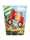 Pack de 8 vasos de cartón con temática de construcción, ideales para fiestas infantiles y cumpleaños temáticos.