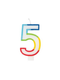 Vela decorativa con diseño arcoíris y número 5, ideal para celebraciones infantiles.
