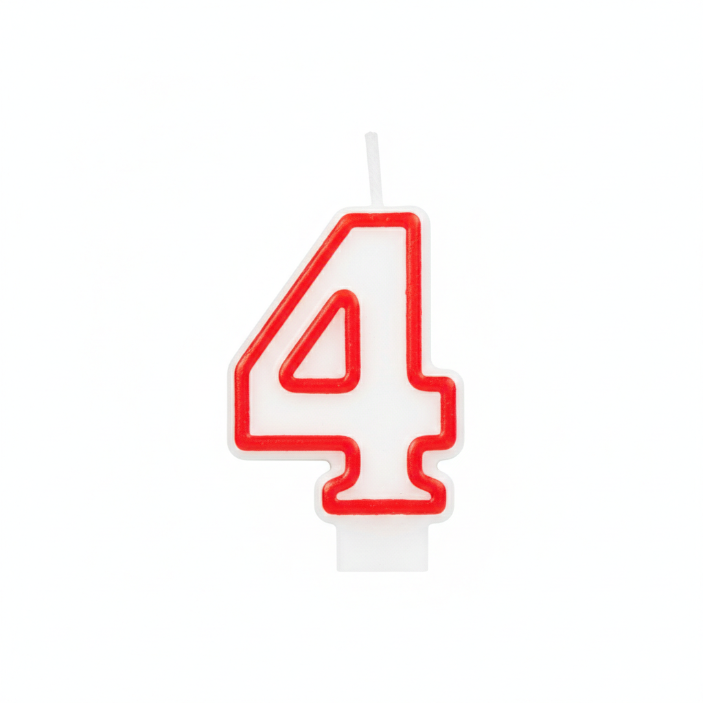 Vela decorativa deluxe con número 4, ideal para fiestas infantiles.