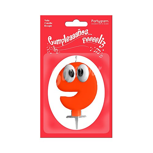 Vela decorativa modelo Valentina con número 9, ideal para cumpleaños infantiles.